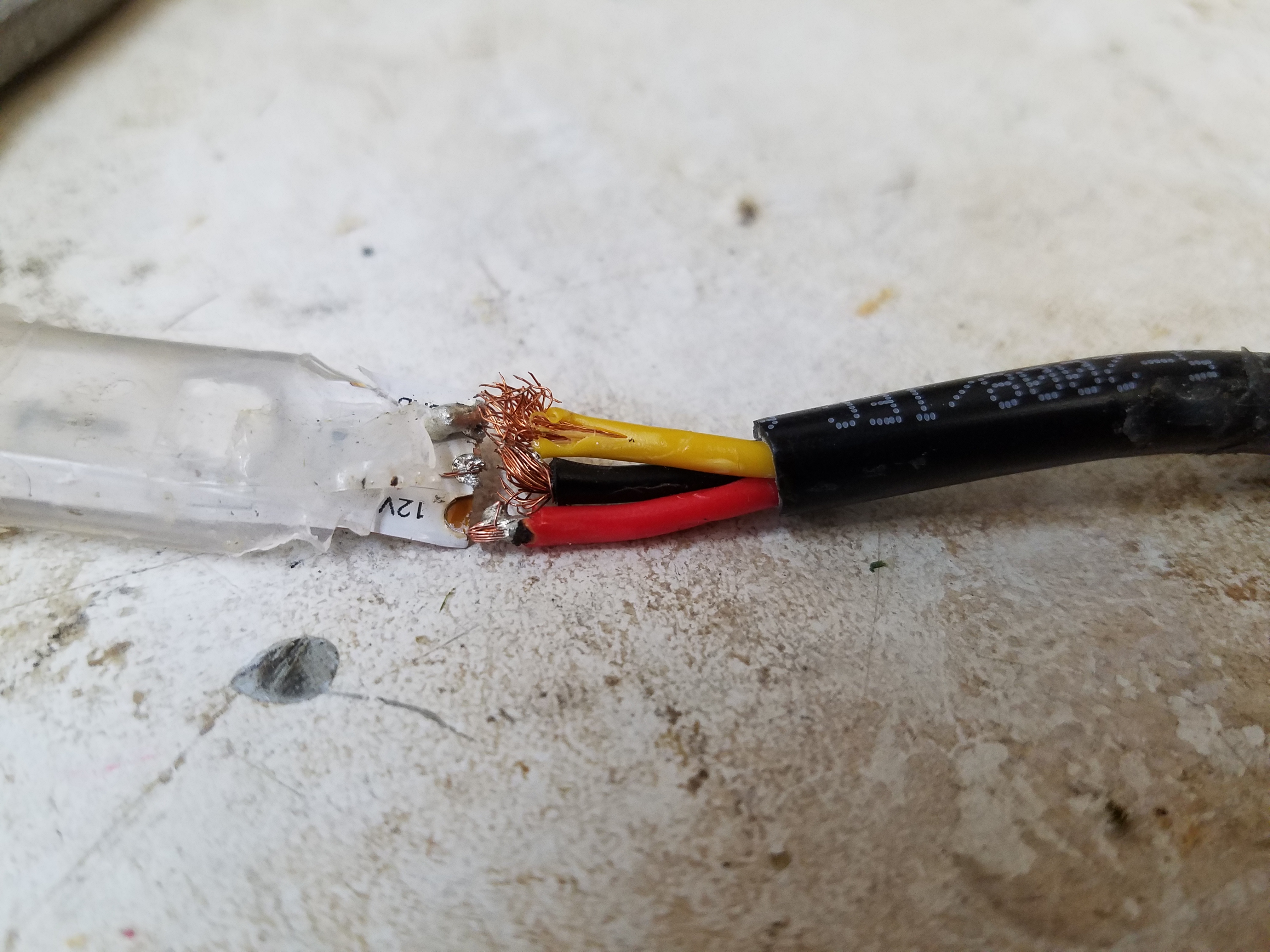 On one of the arches, when I placed the arch on the “anchor” pipe, it pinched the RGB Strip. When I tested the arches, it caused a failure in the strip. So I pulled the strip out of the arch and decided to replace it with a new strip. I soldered the connections and tested the strip before I put the heat shrink wrap in place. Everything tested out perfectly. I used my heat gun to shrink the heat wrap in place.