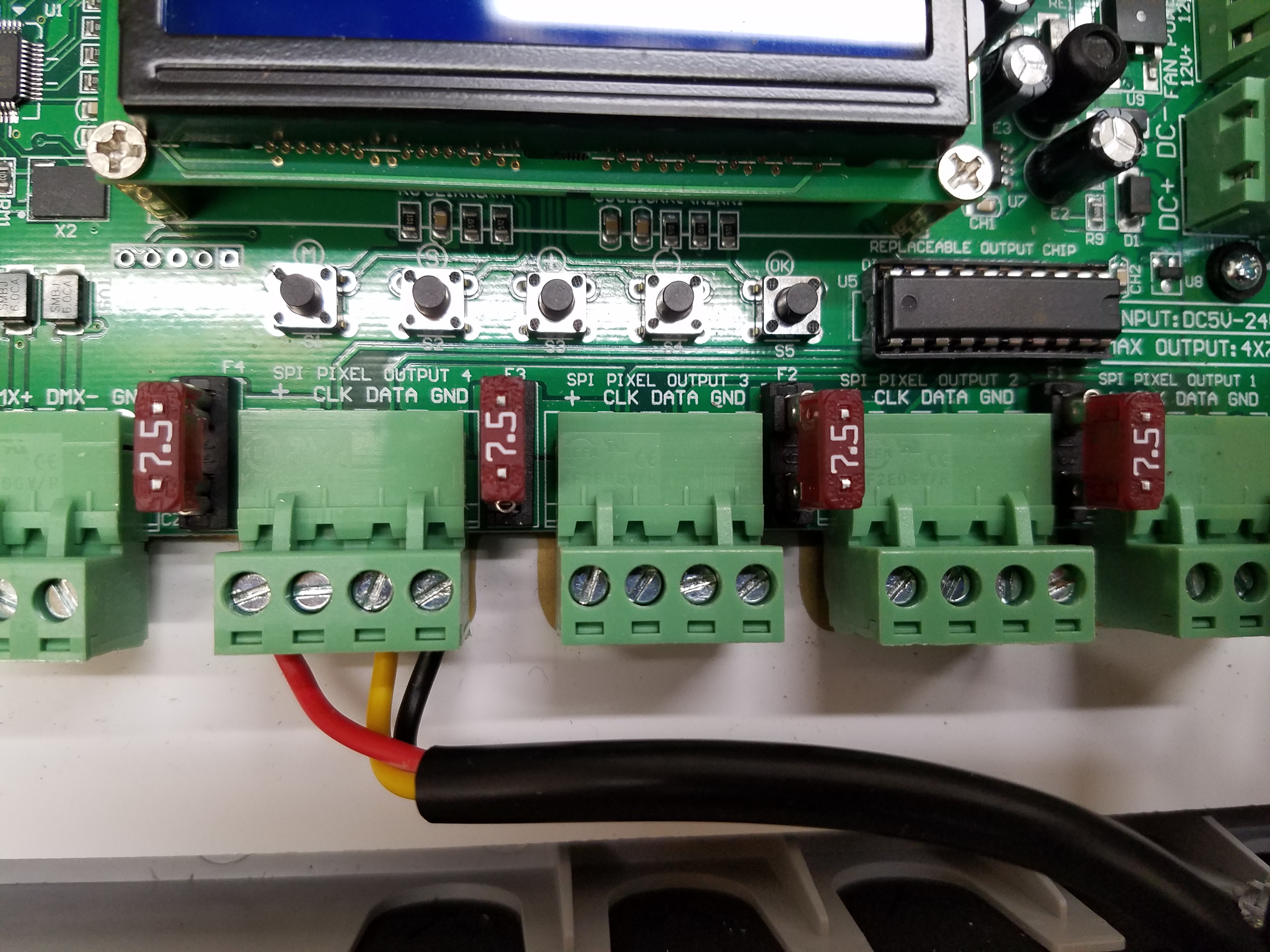 For example, I hook up the red wire to the Positive, the Yellow wire to the data and the Black wire to the ground on the AlphaPix controller.