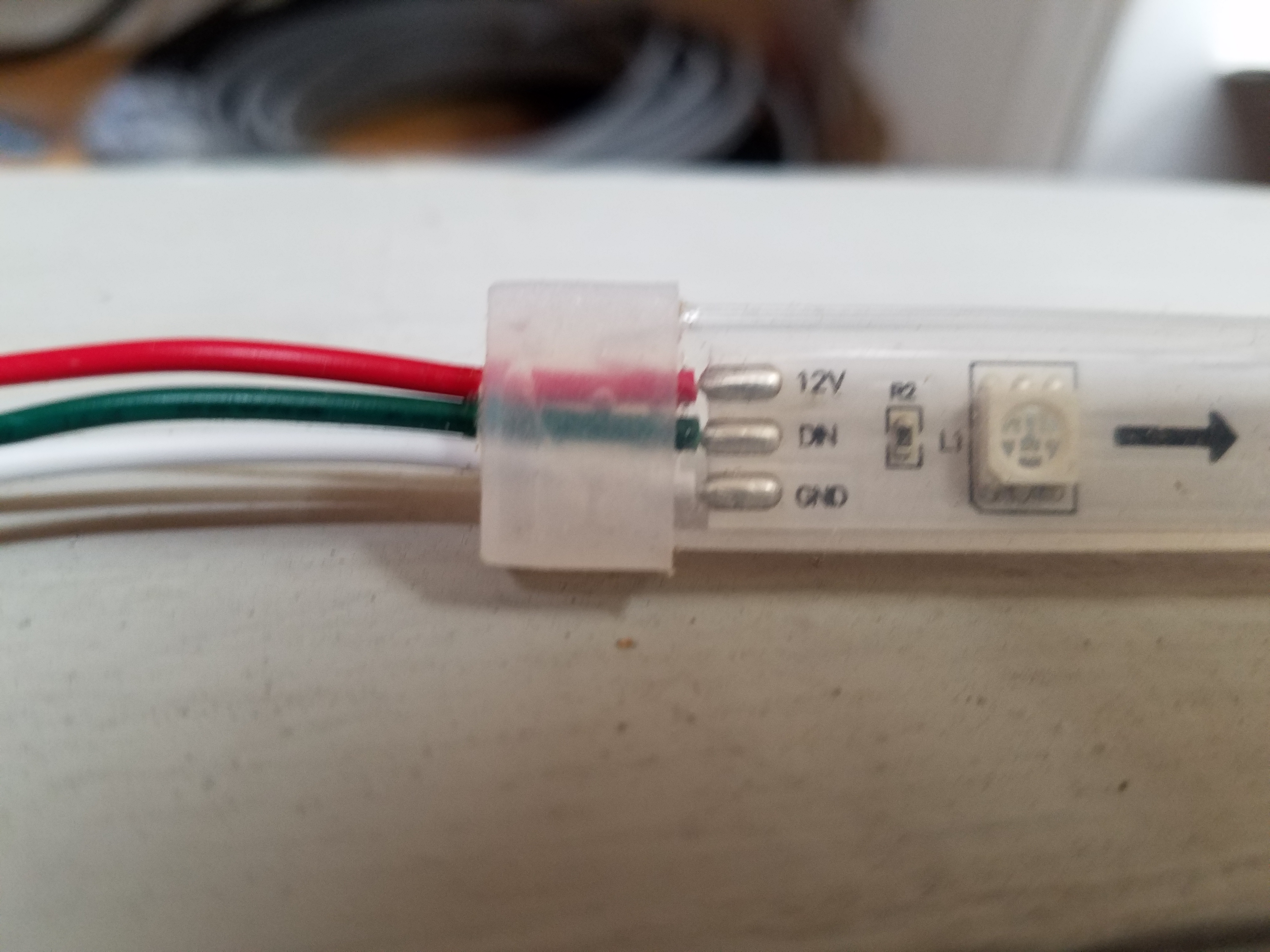 each of the connection points, Positive, Data and Ground. Also make sure you are connecting to the correct end of the strip. The data flows in one direction and will be shown on the strip itself, in this case, by an arrow pointing in the direction of data flow.